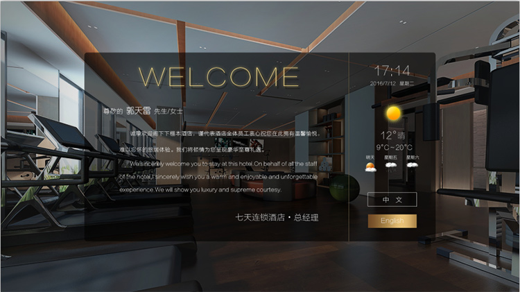 (二)酒店欢迎页面,温馨体贴的酒店关怀、客人名字实时呈现