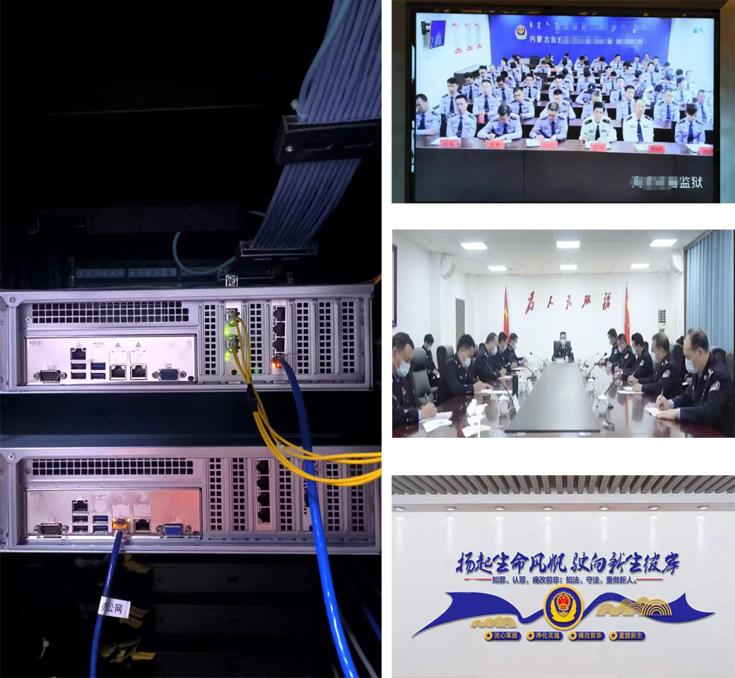 本公司承接内蒙古某戒备监狱 750个监室布6类网线,自办节目+电教视频+央视+卫视频道等共50套节目,使用编码器编码解码广电机顶盒信号源,灵活方便解决自办电教信号问题,终端安卓智能接收机加码高清HDMI信号输出到电视机,本项目终端数量较多,为保证终端正常运行或突发情况,前端采用2台服务器做双机热备。