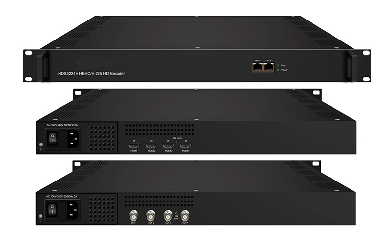 NDS3224V  HEVC/H.265高清编码器是专业高清音视频编码器,支持HEVC/H.265和MPEG-4 AVC/H.264视频编码和MPEG-1 Layer2格式音频编码。该设备支持4路/8路/HDMI/SDI输入,可对4路/8路/12路高清节目同时编码。可通过Web网管系统对设备进行操作。该设备高集成度、低成本的特点,非常适用于电视台、酒店、会所、医院、浴场等数字电视系统。