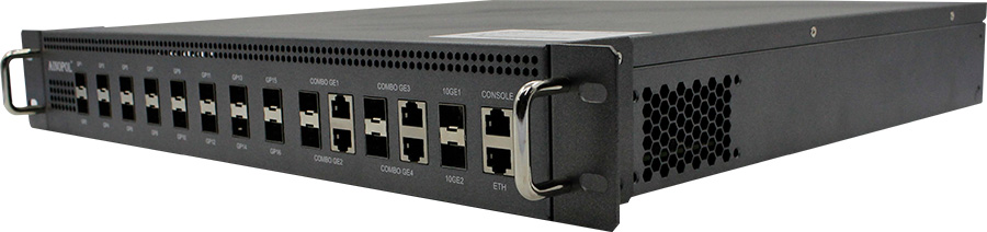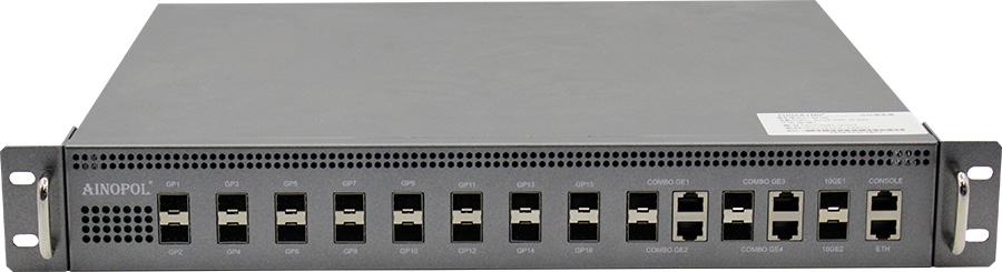 16个下行GPON口,4个上行GE光电复用 Combo口,2个万兆SFP+端口,*支持2048个ONU接入,双AC输入