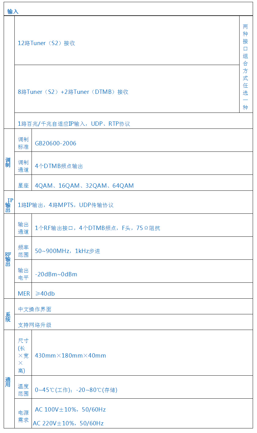 v  支持12路Tuner(S2)接收或8路Tuner(S2)+2路Tuner(DTMB)输入